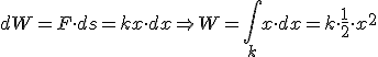 2. Cuando la fuerza varía proporcionalmente con la distancia y la trayectoria es rectilínea, es decir en el caso de muelles y resortes (F=kx).
