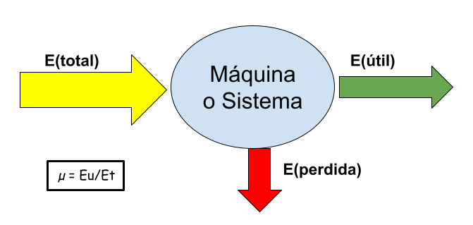 Por lo que se define el rendimiento (η) como el cociente entre la energía útil (Eu) y la energía total (Et) suministrada por el sistema.