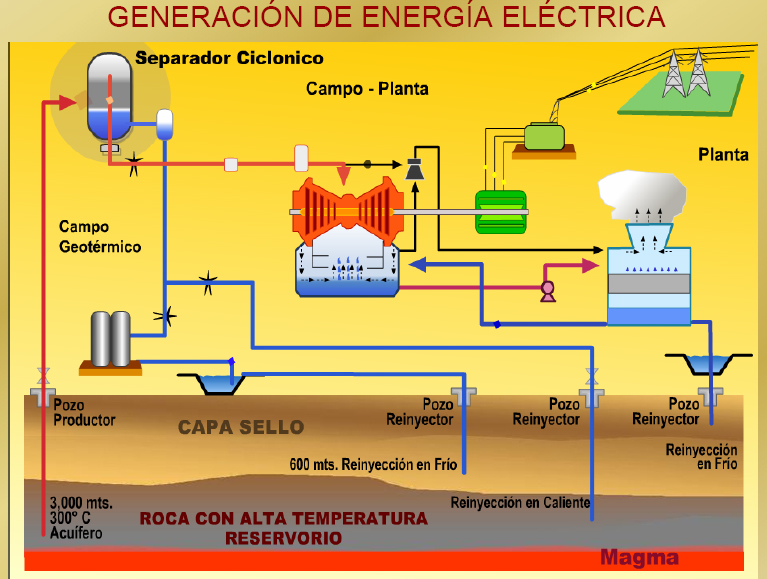 - Disminuye el riesgo de agotar el yacimiento térmico, ya que el agua reinyectada mantiene un cierto nivel de energía térmica.