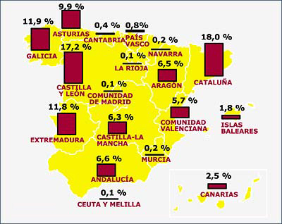 d) ¿Qué porcentaje de energía se produce en la comunidad de Extremadura sobre el total?