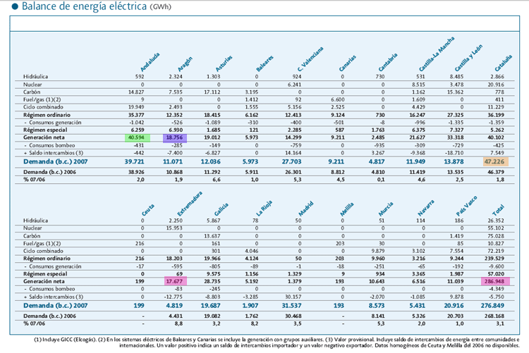 - Informe "La Energía en España" (Ministerio de Industria). (Es un pdf de 4Mb, paciencia al descargarlo)