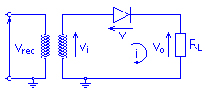 Es el circuito más sencillo que puede construirse con un diodo, se emplea para eliminar la parte negativa o positiva de una señal, la que polariza inversamente al diodo, de una señal de corriente alterna de entrada (Vi) convirtiéndola en corriente directa de salida (Vo).