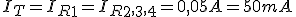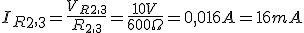 Volviendo al circuito inicial podemos comprobar que realmente la resistencia R2,3 es la equivalente de la asociación en serie de las resistencias R2 y R3, por lo que la intensidad que acabamos de calcular para esta resistencia, también será el valor de la intensidad que atraviesa las resistencias en serie R2 y R3, es decir: