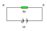 Esta intensidad además de ser la que proporciona la pila al circuito, también es la que atraviesa las dos resistencias en serie del circuito anterior, es decir: