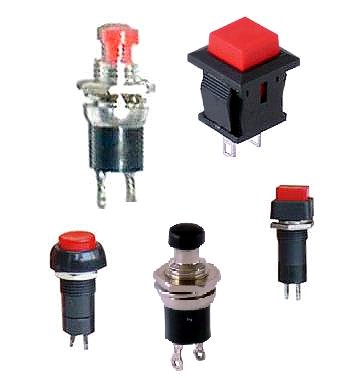 Son componentes que permiten o impiden el paso de la corriente eléctrica, cuando se actúa sobre ellos, tienen la característica de que un resorte los mantiene en una posición estable y pueden estar normalmente abiertos (NA) es decir desconectados, o normalmente cerrados (NC).