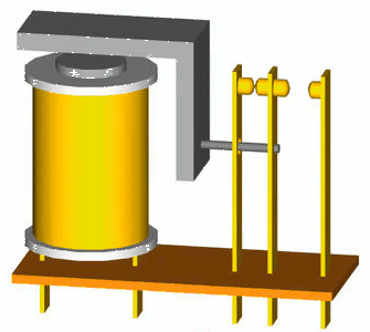 En la siguiente animación puedes ver el esquema de funcionamiento de un relé. Cuando la corriente pasa por la bobina produce un campo magnético que mueve la pieza gris. Esta a su vez produce el movimiento del contacto central.