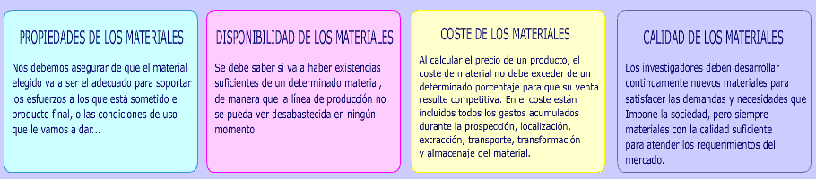 Para tomar la decisión adecuada sobre que material seleccionar se tienen que valorar los siguientes aspectos: