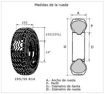 ). Este valor es la suma del diámetro de la llanta mas el doble del perfil del neumático.