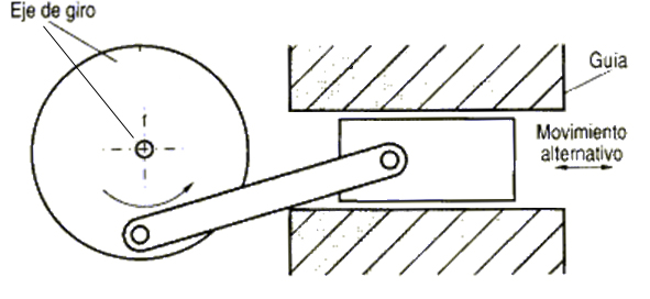 Este mecanismo transforma el movimiento circular en movimiento rectilíneo alternativo.