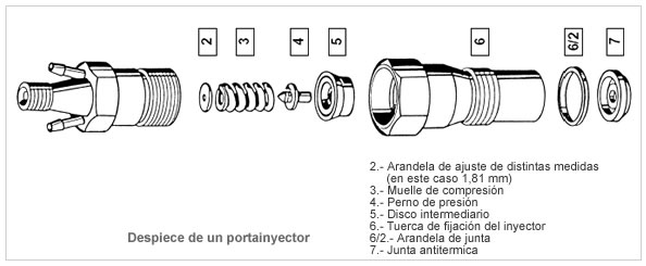 En dirección horizontal aparecen explosionados, y en perfecto orden de inserción, el resto de los elementos del montaje: la junta de bloqueo (4), el asiento cónico sobre el collarín del rodamiento (5), arandela y sellador (6), anillo/retén estabilizador (7)y precinto laberíntico triple (8).
