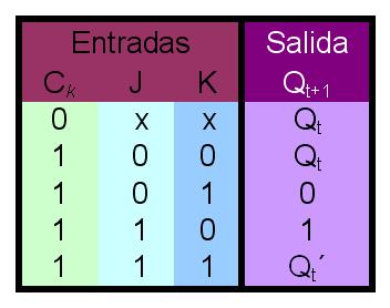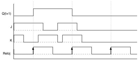 Cronograma de un biestable J-K síncrono por flanco de subida.