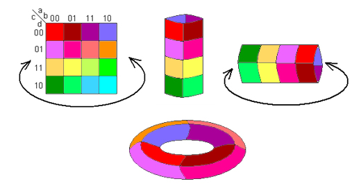 El método se basa en hacer agrupamientos con el mayor número de celdas posible, siempre que sean potencias de dos (16, 8, 4, 2), tratando que todas las celdas que contengan 1 pertenezcan a agrupaciones de celdas.