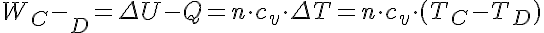 Q_c=\Delta U-W=n\cdot{c_v\cdot{\Delta T}=n\cdot{c_v}\cdot{(T_3-T_2)}}