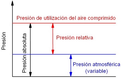 Presión Relativa, la presión relativa es la determinada por un elemento que mide la diferencia entre la presión absoluta y la atmosférica del lugar donde se efectúa la medición. Por ejemplo, si el aire comprimido de una instalación neumática está a 6 bares, esto quiere decir que tiene una presión superior a la atmosférica en 6 bares.