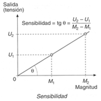La sensibilidad de un aparato será tanto mayor cuanto mayor sea la diferencia entre los valores de la magnitud eléctrica de trabajo, para una misma diferencia de valores de magnitud física de entrada (medida por el sensor).