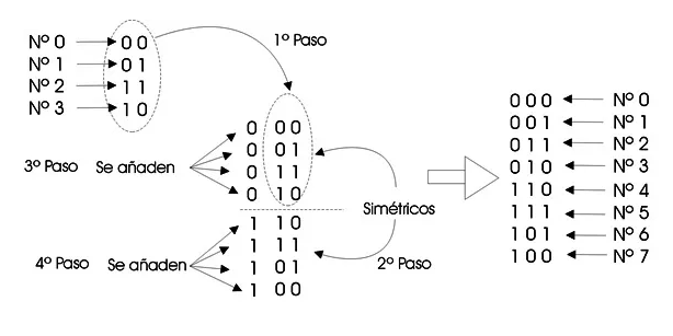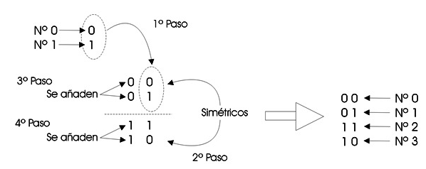 La siguiente tabla muestra la equivalencia entre los distintos códigos binarios analizados.