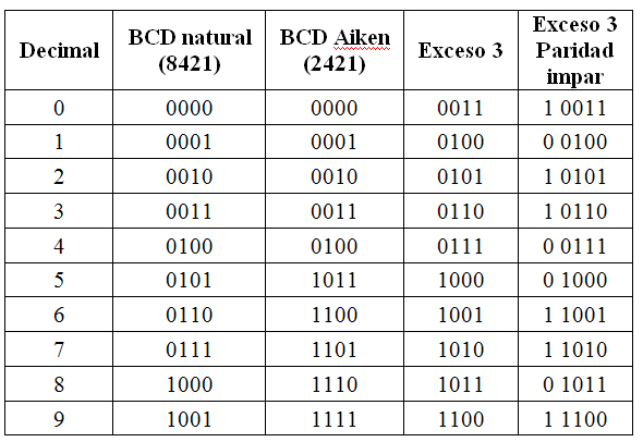 El código BCD es un código ponderado; a cada bit le corresponde un