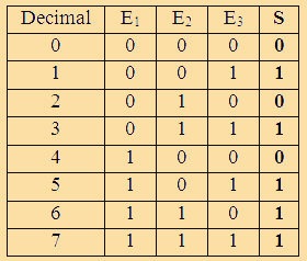 Para transformar el siguiente cronograma de una determinada función lógica, en el que E1, E2 y E3 corresponde a las entradas y S es la salida, en primer lugar vamos a obtener su tabla de verdad, y a partir de esta información conseguimos la función canónica.