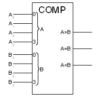 El comparador más básico, que determina si dos números son iguales, se consigue mediante una puerta XOR (or exclusiva), ya que su salida es 1 si los dos bits de entrada son diferentes y 0 si son iguales.