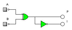 Un ejemplo en el caso de dos bit, sería como se muestra en la tabla de verdad siguiente:
