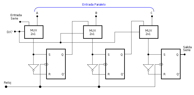 - Serie: La información se introduce bit a bit y se extrae del mismo modo.