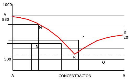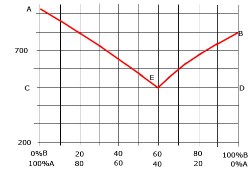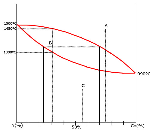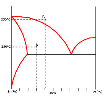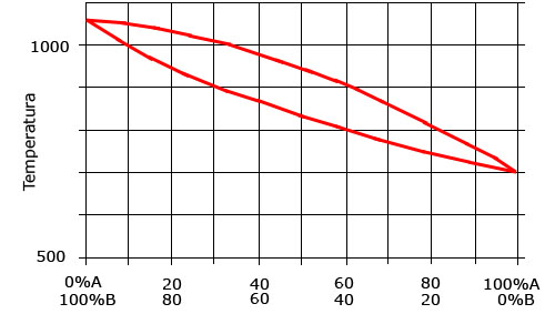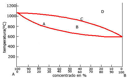 equilibrio de fases de la aleación de dos metales A y B, totalmente solubles en