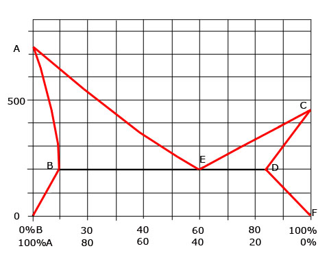 estado líquido y parcialmente insolubles en estado sólido, con un eutéctico.