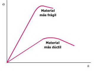 Si comparamos las gráficas de un material dúctil (Límite elástico (σE) más bajo pero se estira más) y un material frágil (Límite elástico (σE) más alto, pero se estira menos).