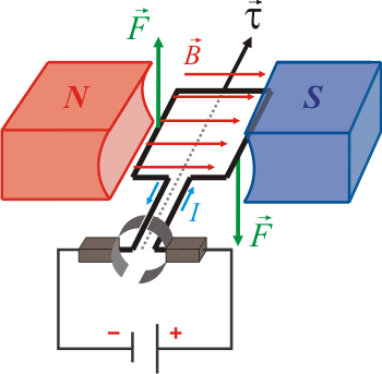 El funcionamiento de un motor de c.c. se basa en la fuerza que se produce sobre un conductor eléctrico recorrido por una intensidad de corriente eléctrica en el seno de un campo magnético, según la expresión: