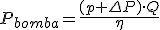 La potencia (P) de una bomba hidráulica es la relación entre la energía de flujo proporcionada por la bomba y el tiempo que la misma ha estado en funcionamiento para comunicar dicha energía.